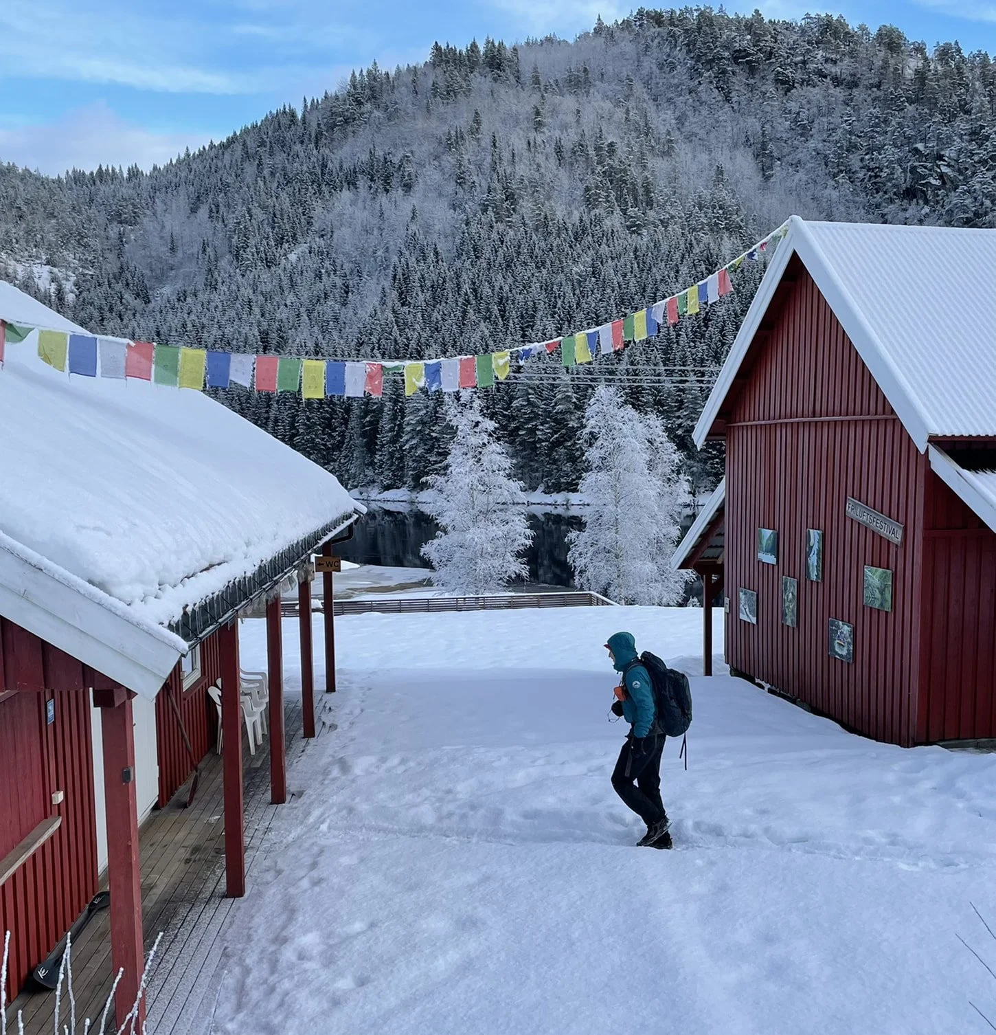 Arriving at Adventure Norway. I send David on ahead in the hope that he will put the kettle on.