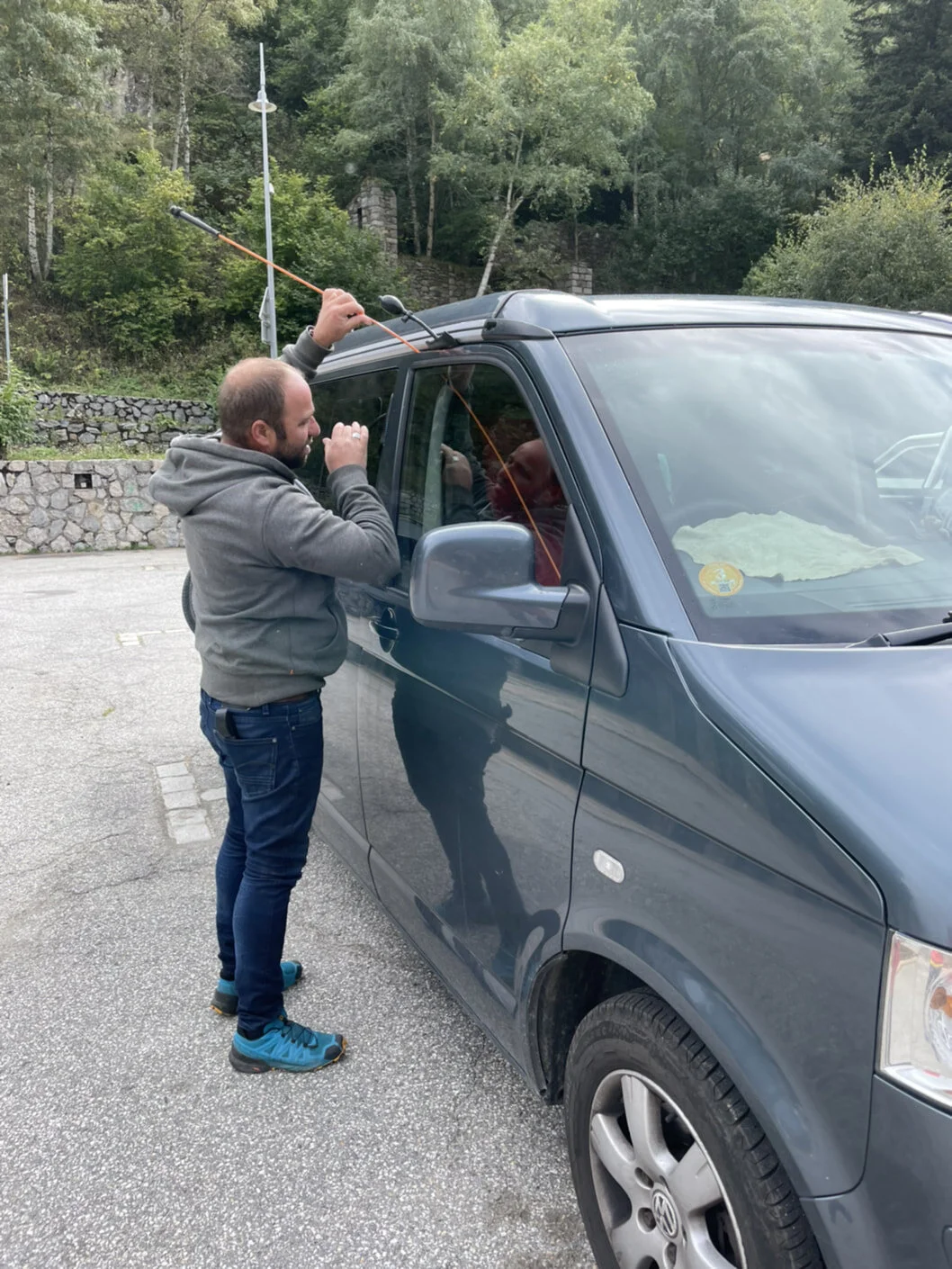 It is only a matter of minutes therefore before we are through to the marvellous RAC European phone helpline (who we sensibly took out cover with before coming away). They arrange for a car thief, sorry didn’t mean that.. try again… for a local hero to come out with some very clever gadgetry that allows him to open the door just enough to get a wire in and hook out the keys.