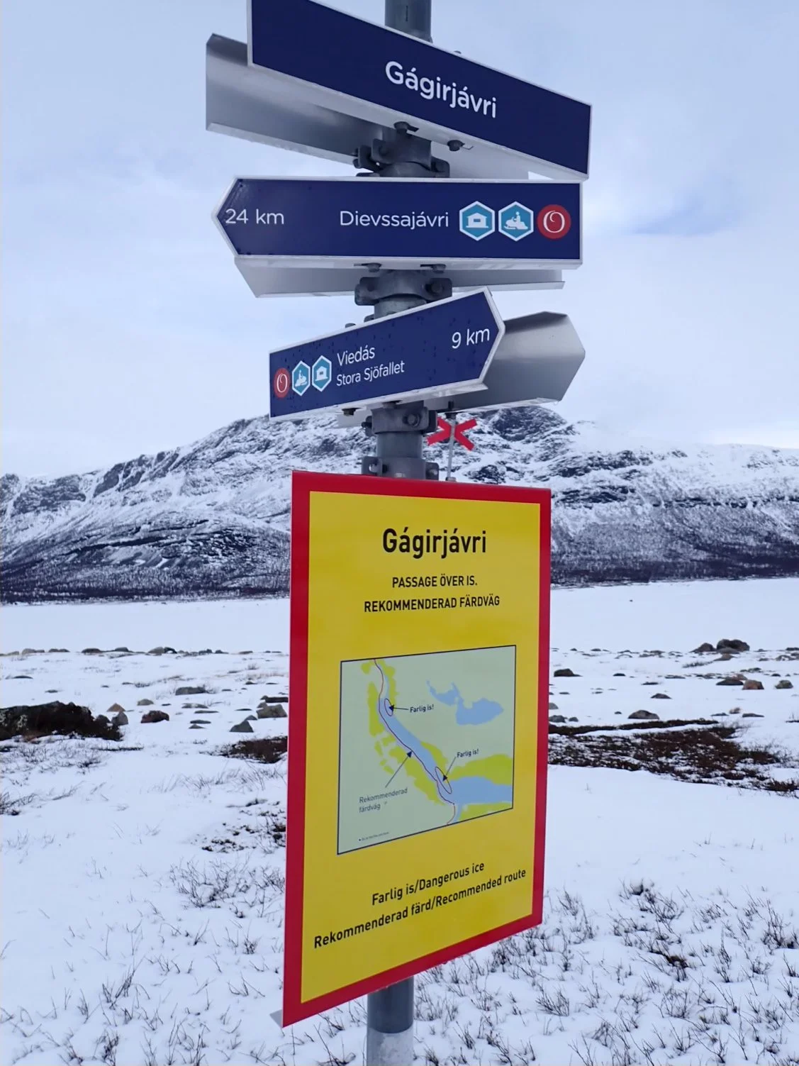 Total distance travelled: 374.4 km - Weather: plus temperatures, around +2°C, Heavy snow. - Snow conditions: Terrible for first 3 hours. Improved once we reached the lake.