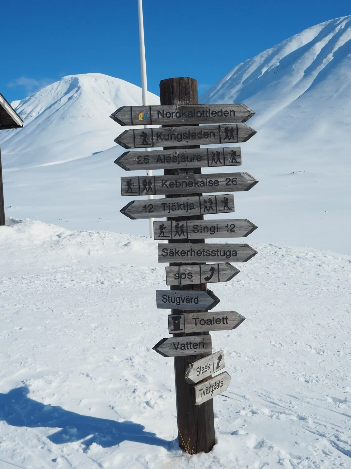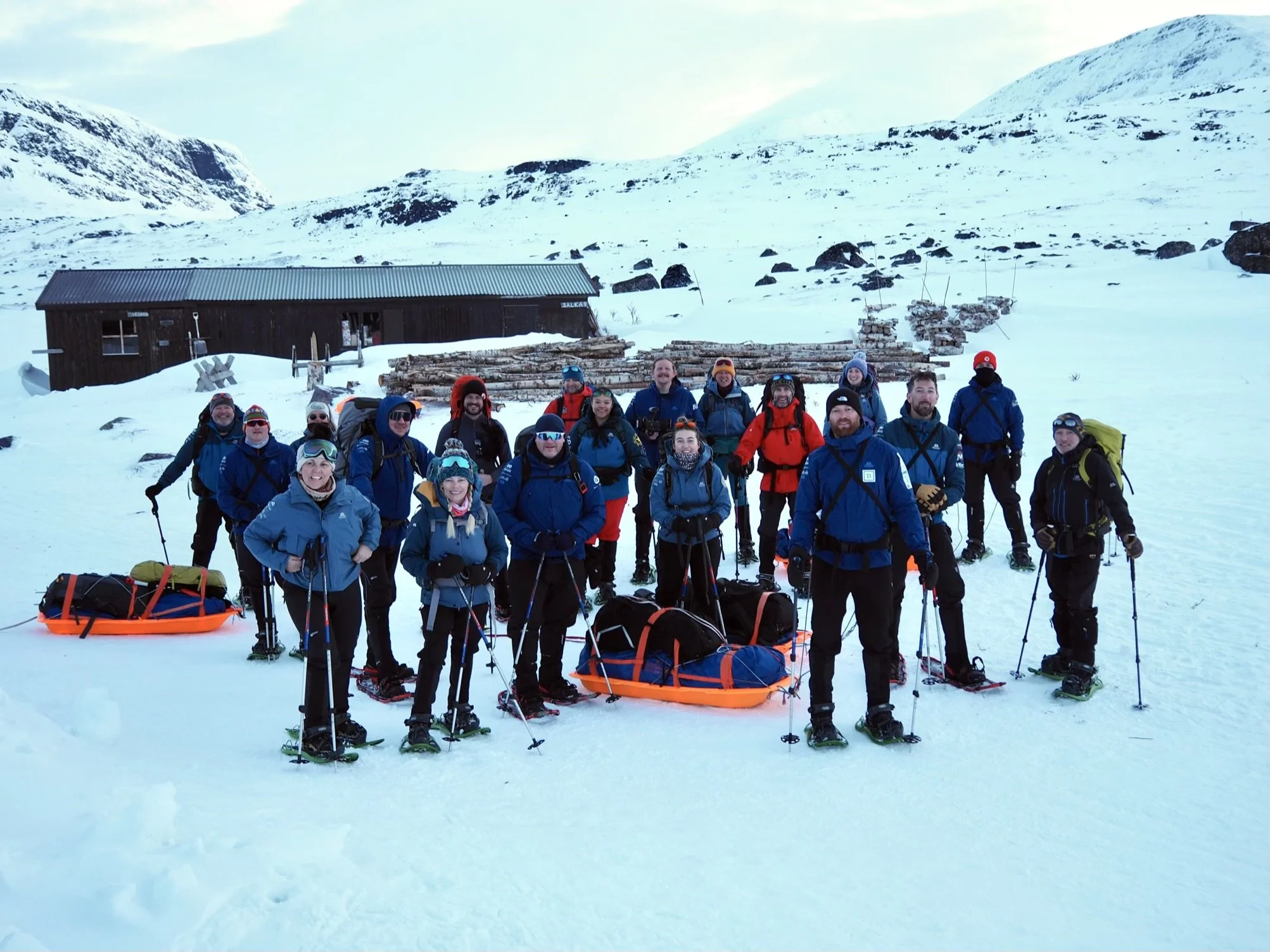 There had been some problems with the online booking system, which we knew about, and they had inadvertently overbooked by some 40%, which we didn’t. It was a very nice drying room he assured us. We would be sharing the cabin, but thankfully not the drying room, with a group of 21 British people on a charity snow shoe hike.